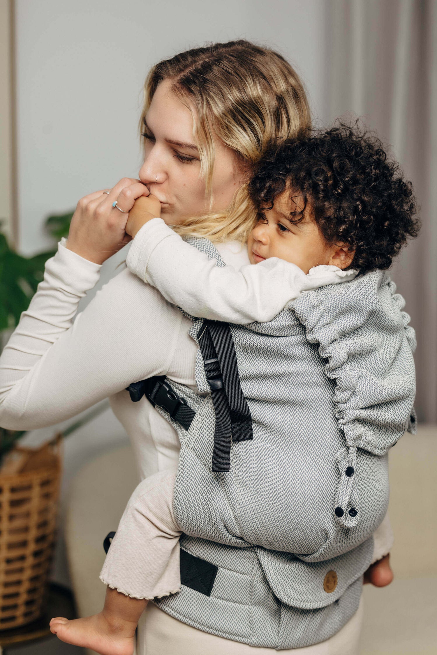 - Vorder-Trage (Bauch an Bauch) für Nähe und Nickerchen.