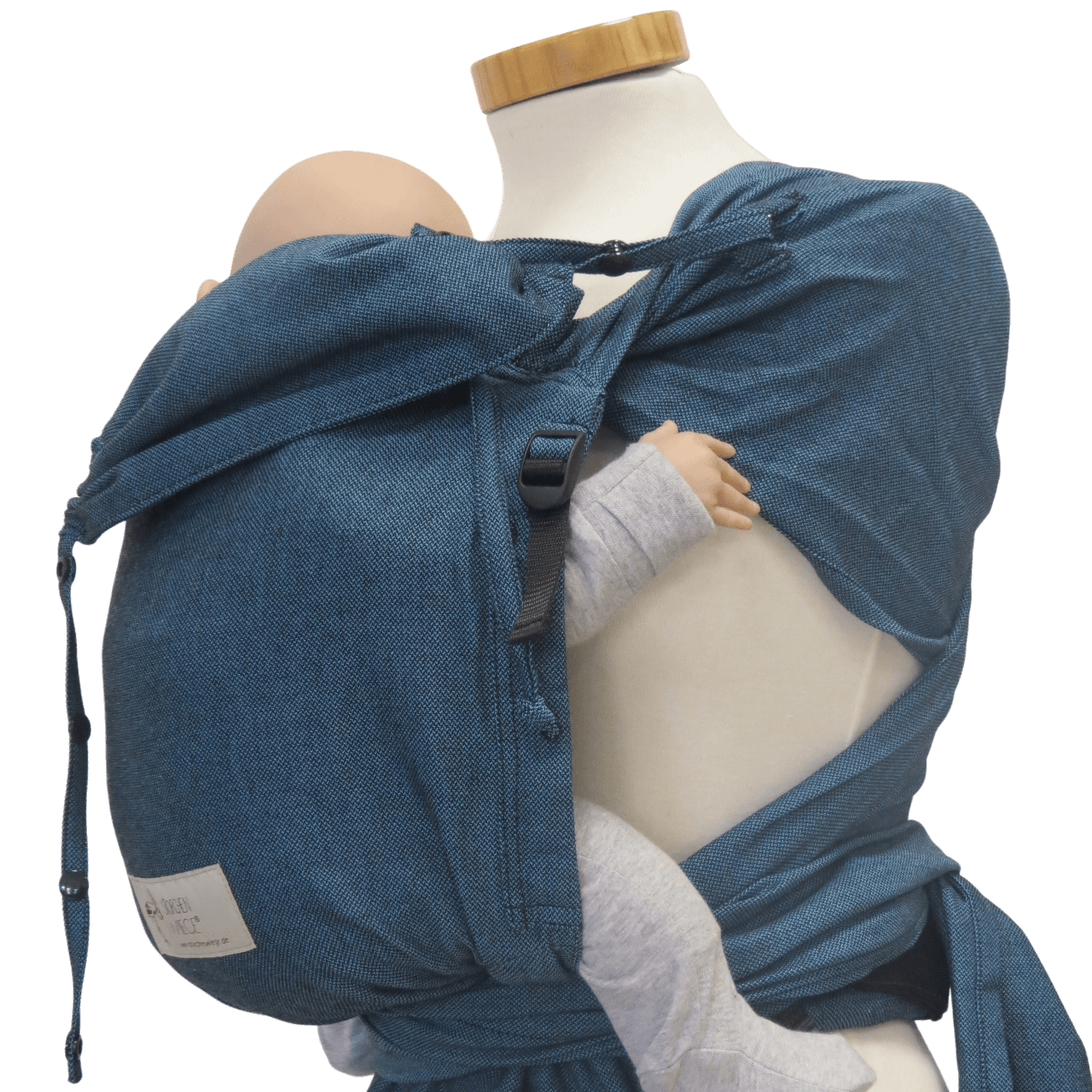 Diese türkisfarbene Wrap Babytrage vereint Komfort, Sicherheit und Stil, eine zuverlässige Alltagswahl für Eltern, die ihr Baby auf natürliche, ergonomische Weise nah bei sich tragen möchten.